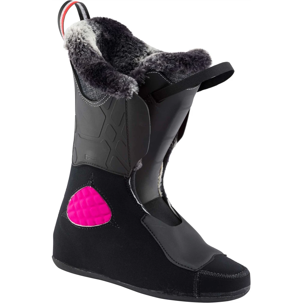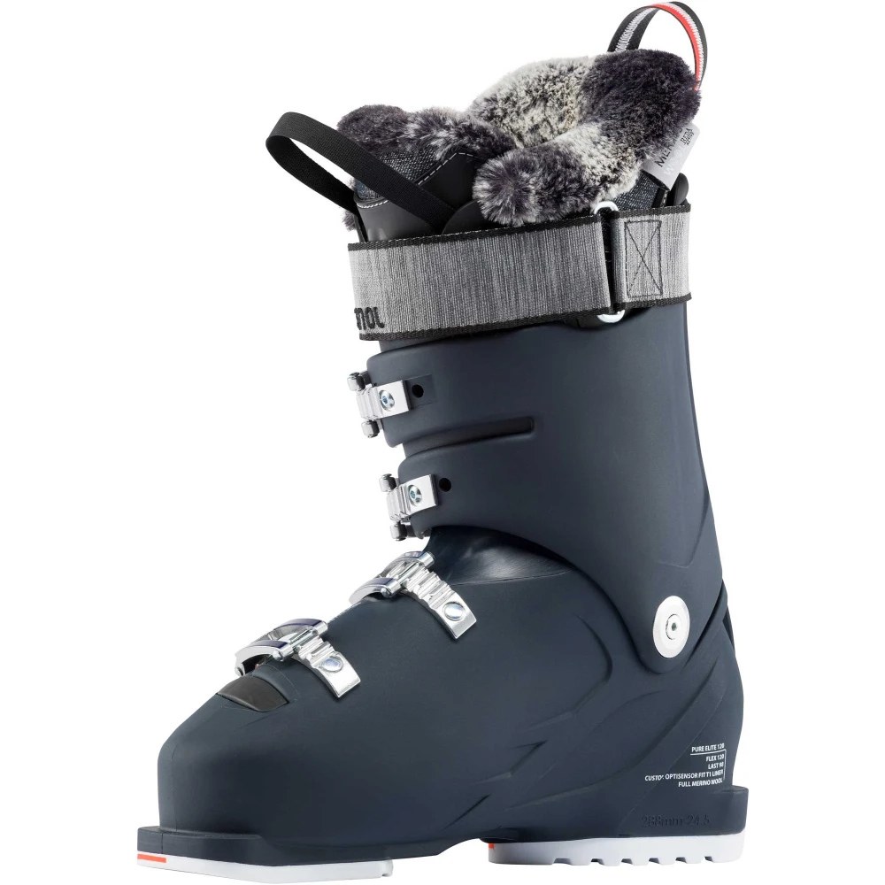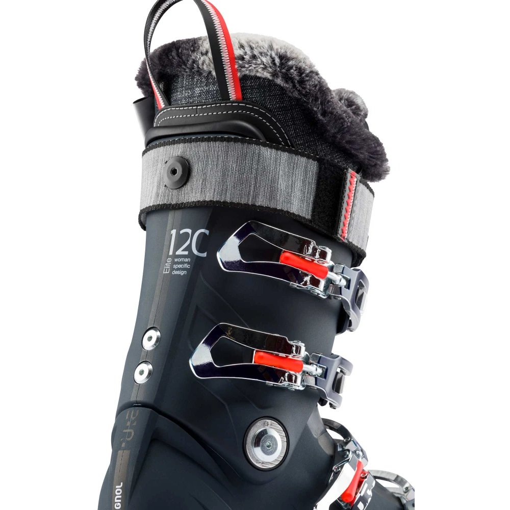 La chaussure de ski femme PURE ELITE 120 de la marque ROSSIGNOL a été entièrement conçue pour répondre aux exigences des skieuses exigeantes qui veulent une chaussure rigide et près du pied pour être performantes sur les skis.