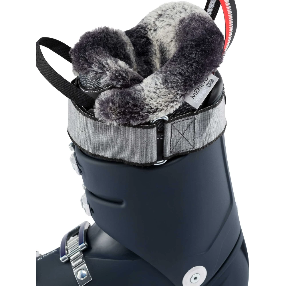 La largeur du volume chaussant de 98 mm propose fit très près du pied, qui fera le bonheur des femmes ayant les pieds étroits mais également de celles qui recherchent un maximum de précision. Son flex élevé de 120 est idéal pour les skieuses engagées qui veulent de la réactivité et une bonne transmission de puissance. Adaptée à la morphologie des femmes, elle possède un chausson thermoformable doté d’une pointe de pieds en laine mérinos assurant confort et apport thermique.